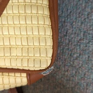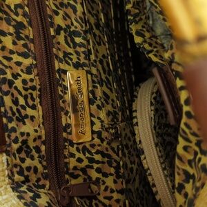 bundle of 3 natural colored fabric purses, including 2 beige/ tan, one with animal print lining and coin purse, faux wood handles, by Amanda Smith, one is solid black with leather accents, by Valerie Stevens, and another is light beige, wooden bead accents, coin purse, detachable shoulder stra, by Jacobson's- some wear on this purse, as seen in pics. otherwise, good condition