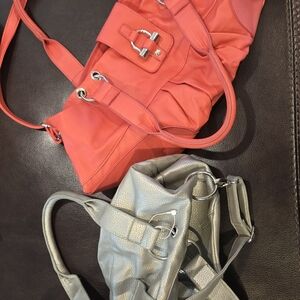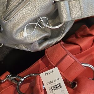 New York and Company purses. One silver and one orange satchel style purses with handle and shoulder strap the pair are sold as a set. Purses purchased at regular price but selling set for less than half @ $30. Can be sold separately. Never worn, one still has the price tag. Smoke and pet free home.