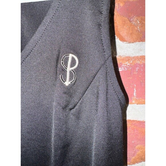 Pursesuitz compression tank in black. It has unique pockets that keep your items secure. Wear under a loose shirt to keep items easy to access but hidden from thieves. Approximately a size small. Please see measurements in the photo. Side pockets, and bust support. The fabric is moisture wicking, anti microbial and machine washable. It is soft and silky to the touch. V cut neckline, and a scoop back that is not as deep cut.
