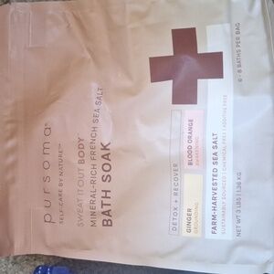 Sweat It Out BODY by Pursoma 3lbs will transform your bathroom into an at-home spa. This 30-minute soak helps sore muscles recover after a strenuous day or a rigorous workout. Botanical aromatherapy relaxes tension while soothing the body. Expect to feel rejuvenated, soothed, and uplifted with every bath. The star ingredient: French Grey Sea Salt - detoxifying + tension melting The botanical blend: Ginger + Blood Orange - grounding + awakening Pursoma is a clean wellness and beauty brand that creates pure, simple ways to maintain your health, help you disconnect and create a more peaceful state of living. They provide the remedies, tools and lifestyle products to unplug, unwind and detox in order to truly live well in the modern world. Pursoma selects their premium ingredients for the highest potency and purity in the world. They sustainably source and verify their products to be safe for your body -inside and out-, non-toxic, and free of toxic-processing.