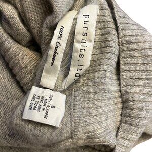 This is a women's size small cashmere sweater by Pursuits, Ltd. It features a turtleneck neckline, long sleeves, and a solid gray color. The sweater is made from 100% cashmere, providing a luxurious and soft feel. This stylish cardigan is perfect for keeping warm and cozy during the colder months, adding a touch of elegance to any outfit.