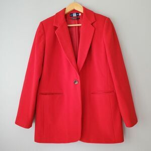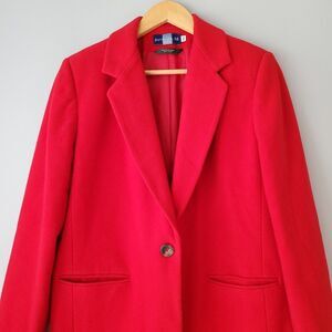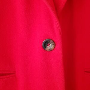 Vintage red wool/cashmere blend blazer from Pursuits, LTD. 2 front pockets. 1 button closure. Lined.