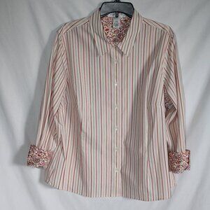 Pursuits LTD Women's Pink Raspberry Striped Button Up Long-Sleeved Shirt - 22W