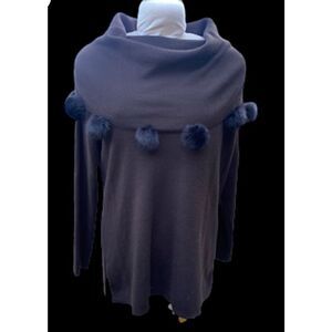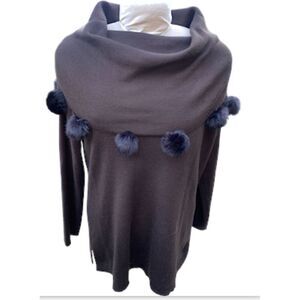 Stunning merino wool sweater with rabbit fur accents. Size XL. Brown. Neck can be draped several ways for a flattering silhouette.