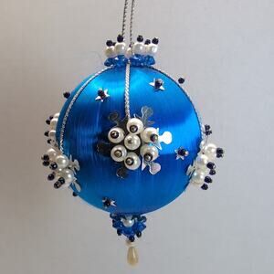 Push Pin Beaded Christmas Ornament Blue Satin Pearl MCM