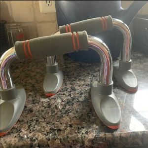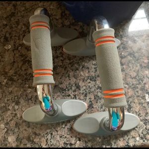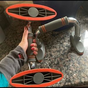 A minor marking on one handle from storage. No stains or tears. Handles are easily cleaned and disinfected, durable materials.