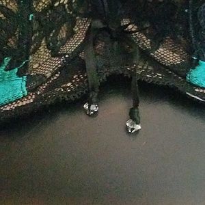 Peacock color blue with black lace and bow detail