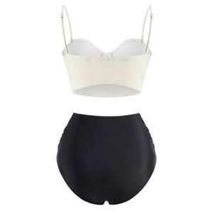 Push-Up Ruffled Tankini Set – Black & Ivory, Sweetheart Neckline, High-Waisted S