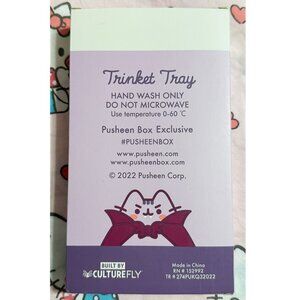 Available here is an NIP Pusheen Box Exclusive Purple Bat Trinket Tray. There is a small graphic of Pusheen dressed up as an adorable vampire for Halloween! This would make the cutest Halloween decoration!