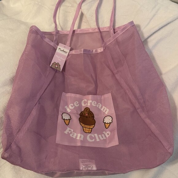 Pusheen Box exclusive ice cream fan club mesh purple beach tote bag NWT