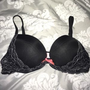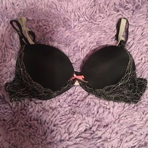 Size:34A Adorable bra! Lightly worn. Cute lace design and pink bow. Padded PUSH UP bra. You will love it!