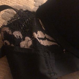 Extremely soft new black push-up convertible bra. Has push up padding in cups and “invisible “ edges made to blend into skin and not show or dig-in . Very soft fabric. Beautiful embroidered lace around sides. Had removable straps can be worn strapless or criss-crossed for racerback styles.