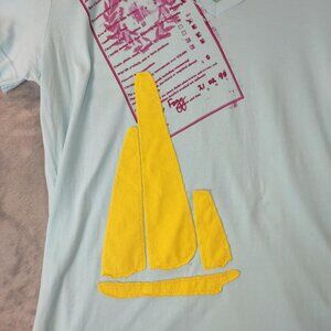 Pussers Women XL Turquoise Blue Royal Navy Traditional Cotton vintage vneck Top