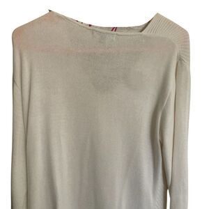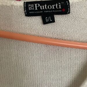 Putorti Cream Triangle Button Pullover Sweater. Size Large. Measures 17" P2P and is 25" long from shoulder to him. The sweater is an excellent preowned condition with minimal wear. No stains holes are visible flaws.