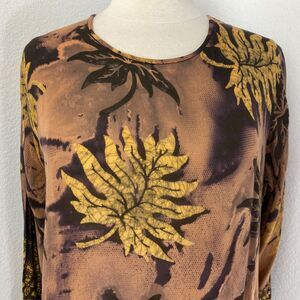 Putri Diana Batik Brown Tunic Blouse Top Med Long Sleeves Boho Whimsy Fairy Goth