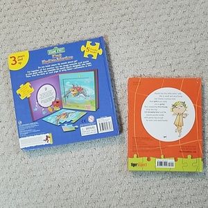 Elmo's Playtime Adventure contains story and 5 puzzle pictures. Charlie & Lola, I'm Just Not Keen on spiders has story and 6 puzzle pictures. Excellent used condition. All pieces present and intact. No water marks, rips, etc. Price is for both books. Smoke-free and pet-free home.