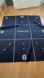 Black exercise mat with white numbers and lines. Ideal for workouts.
