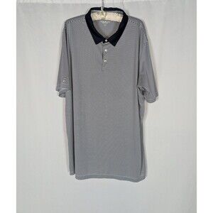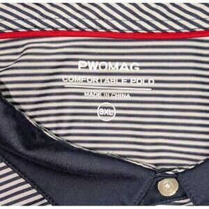 Pwomag Shirt 3XL Men's Blue Striped Short Sleeve Polo Golf Athletic Comfortable