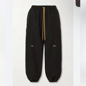 From day-time chic, to cool- girl night out on the town, these track pants are the perfect addition to your wardrobe! A sleek black track pant by Pyer Moss styled with a yellow contrast drawstring waist for subtle sportiness… Dress them up or down and pair them with your favored sneaks or pump and your model- off duty look is complete!
