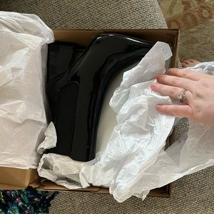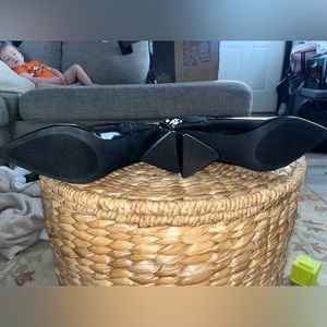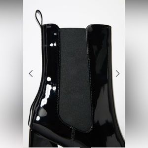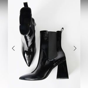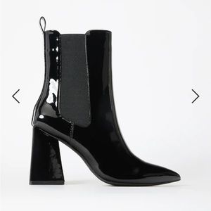 Triangle heel with a groovy shape very 70s style. Pointed toe faux leather boots with no zipper