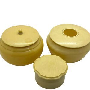 Vintage Pyralin Du Barry FRENCH IVORY / Celluloid 3 Pcs Vanity Set Hair Reciever