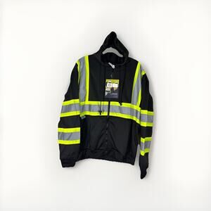 Stay warm and visible during the colder months with this Pyramex High Visibility Insulated Bomber Winter Safety PARKA COAT. The coat features a polyester outer shell and a fleece lining and insulation, ensuring you stay warm in fall, winter, and spring. The coat is also waterproof and has a hood for added protection against the elements.