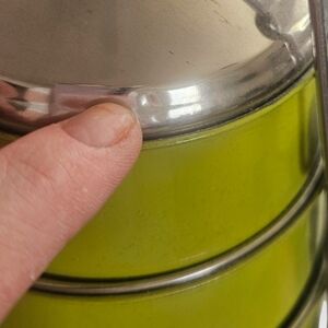 * 1 very small dent in lid as shown in photo