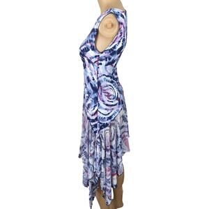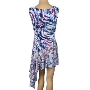 Pyramid Collection Blue Purple Tie Dye Asymmetric Ruffle Hem Top SZ XS