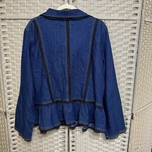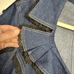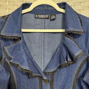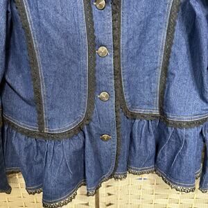 Pyramid Collection Ruffle Denim Jacket Women 2X Blue Black Lace Trim Whimsigoth