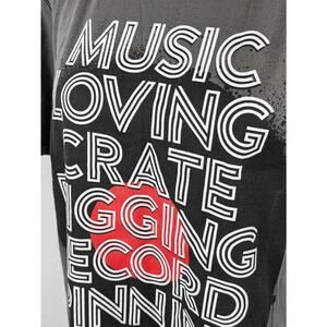 Pyramid Womens Medium T-Shirt Vinyl Junkie Graphic Gray Short Sleeve Music Tee
