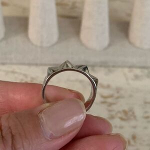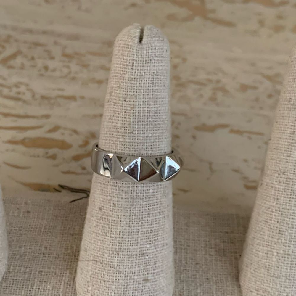 Gently wont pyramid ring. I don’t remember the brand and am not sure of the material so if you have allergies to certain metals this may not be for you.
