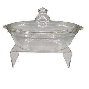 Vintage Clear Pyrex 1.5qt 033-8 3-B Oval Glass Casserole Dish Etched Silver Plated RARE Footed Holder Baking Dish Holidays Thanksgiving Christmas New Years Party