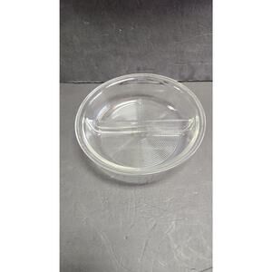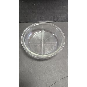 Pyrex 2-Section Divided Clear Glass Plate Ribbed Restaurant Ware Dish Made USA