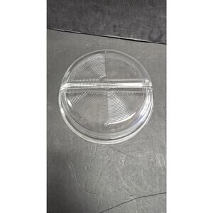 Item: Round 2-section divided clear glass plate/dish with ribbed concentric base