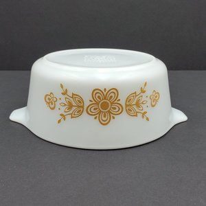 Pyrex 472-B 750 ml Butterfly Gold Casserole Dish Gold on White Baking Dish