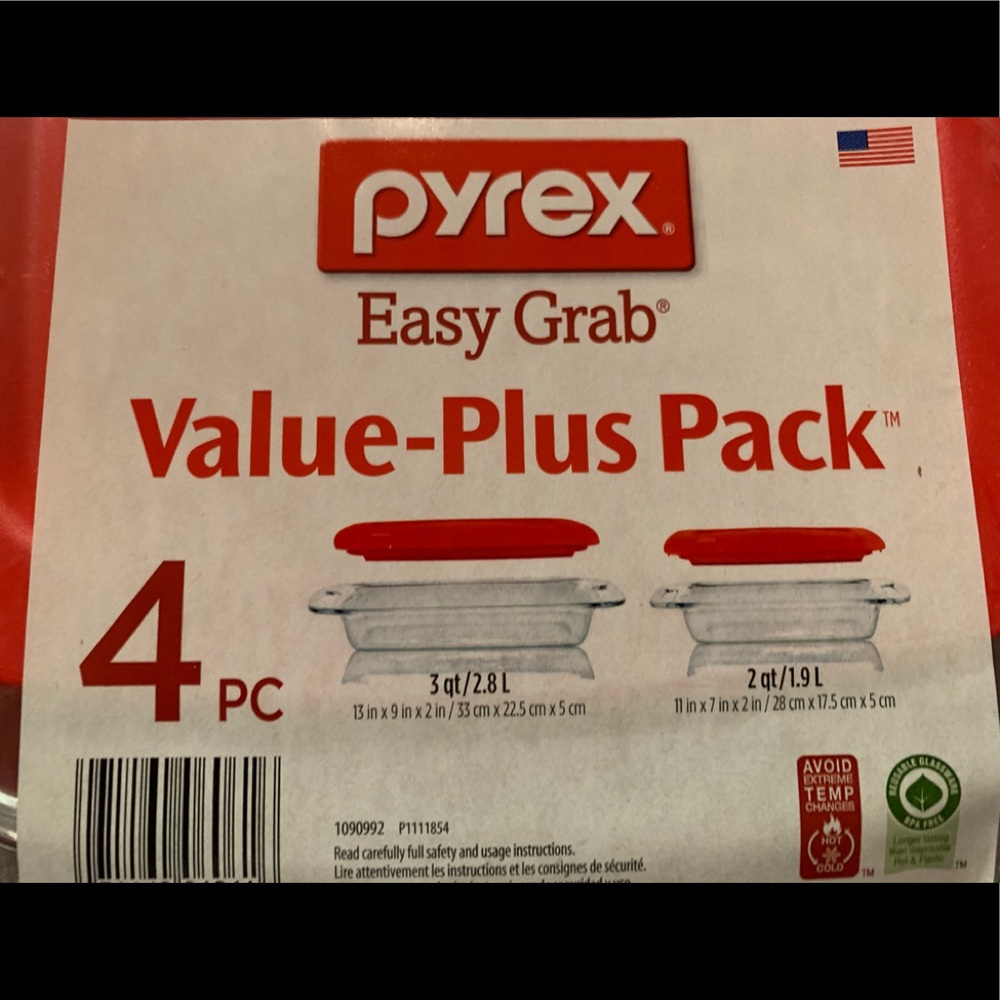 Pyrex easy grab Brand new still in seal 3qt/2.8L 2qt/1.9L Bpa free 4pc With lids