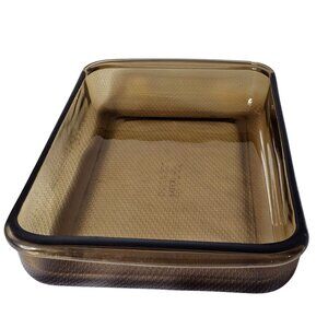 Pyrex Amber Brown Cake Pan 2qt Visions baking dish Fireside glass casserole 232N