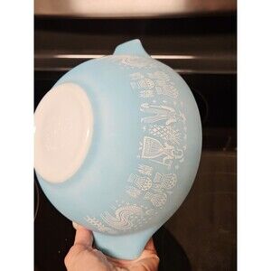 Pyrex Amish Butterprint White on Turquoise 1 1/2 qt Cinderella Mixing Bowl #442