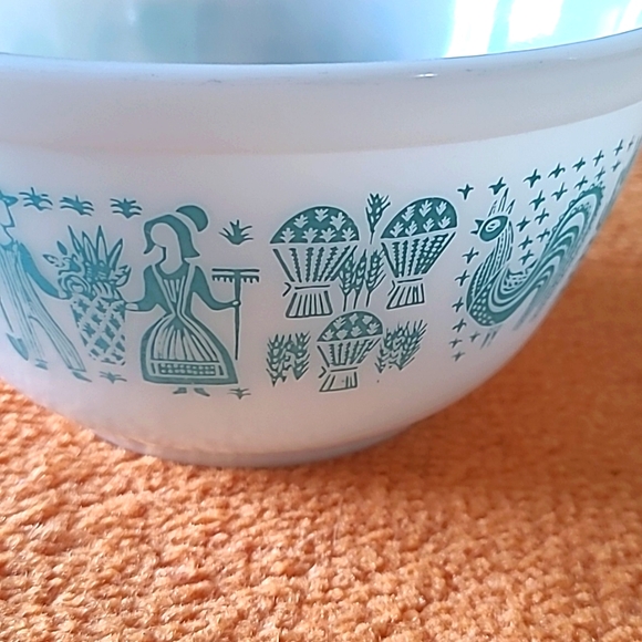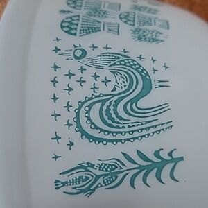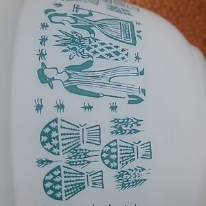 1.5 QT pyrex Butterprint bowl Turquise/White clean, no scratches