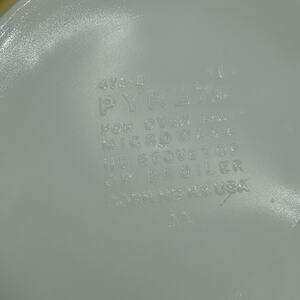 Pre owned used. Color fade on dish. Lid is cloudy. Normal use wear marks, scratches. See pictures for conditions.