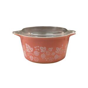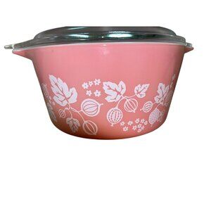 Pyrex Cinderella Casserole Dish with Lid Used Pink Gooseberry Round Pink White