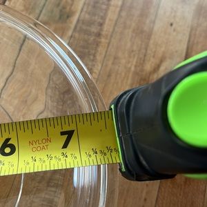 Pyrex Lid Clear, measures 7 5/8” across. Only numbers I can read are the 32 and Pyrex stamp. Other numbers are wore down/not clearly stamped. Lid is in otherwise great condition, besides the stamp marks not being clear. No chips cracks or scratches.