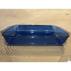 The Pyrex Colbalt Blue 233-R 13"x9" 3Qt Casserole Baking Dish is a vintage USA-made baking dish with a retro design perfect for cooking and baking. Featuring a rectangular shape and a 3-quart capacity, this original Pyrex casserole dish in a vibrant blue color is a stylish addition to any kitchen. With its handles for easy transport and the iconic Pyrex brand, this baking dish is a timeless piece that brings a touch of nostalgia to your cooking experience.