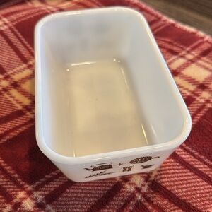 PYREX Vintage Early American White Brown Small Loaf Pan 1.5 Pint Oven Ware no chips
