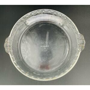 Pyrex Glass Pie Plate Dish Pan 9.5" Round 229 Clear Handles Fluted Edge Stains