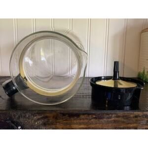 Upgrade your coffee service with the Vintage Pyrex Gold Wheat Retro 10 cup Coffee Carafe. Featuring a classic MCM design, this carafe is a stylish addition to any kitchen or coffee station. The durable construction ensures lasting use, while the gold wheat pattern adds a touch of mid-century charm. Designed to fit seamlessly with your existing coffee setup, this carafe is perfect for serving guests or for enjoying a personal cup of your favorite blend. Whether you're a collector of vintage Pyrex or simply appreciate the elegance of retro kitchenware, this coffee carafe is an essential piece for any coffee lover.