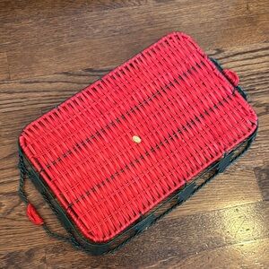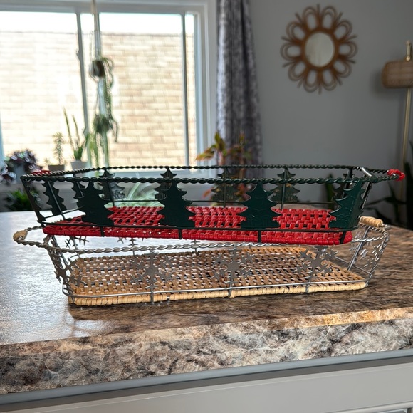 Enhance your holiday dinner decor with this charming Pyrex serving basket set- featuring festive red and green accents and silver snowflakes.