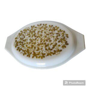 Pyrex Lid Verde Oval 2.5 QT lid - 945 C white green design. Handles