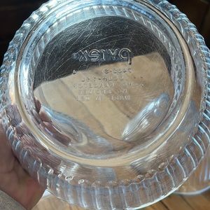 Pyrex Light Blue Ribbed Bowls. Set of 3, numbered 7403-s, 7402-s, and 7401-s. These bowls are clear with a light blue tint or color to them. They do have some wear in the bottom of the bowls, (see pics) otherwise are in good condition with no chips or cracks.