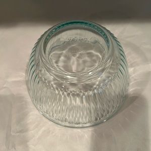This Pyrex clear sculptured glass mixing bowl is perfect for mixing,storing,and serving.It holds 4.5 cups
